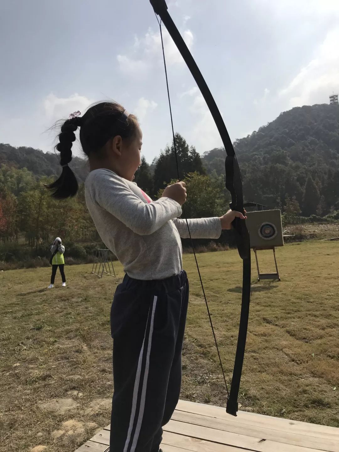站位、搭箭、扣弦、开弓、瞄准,小小的人儿一个个化身“神枪手”,有模有样。