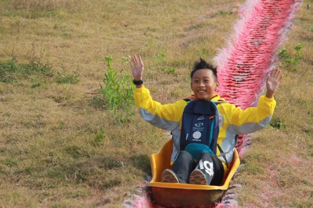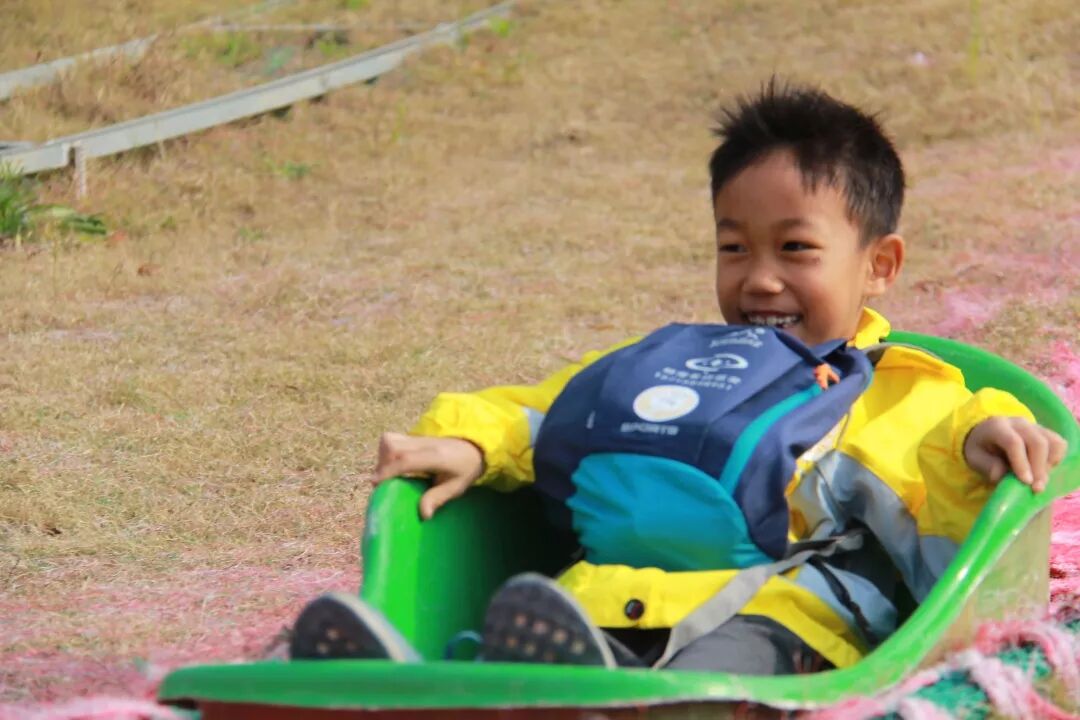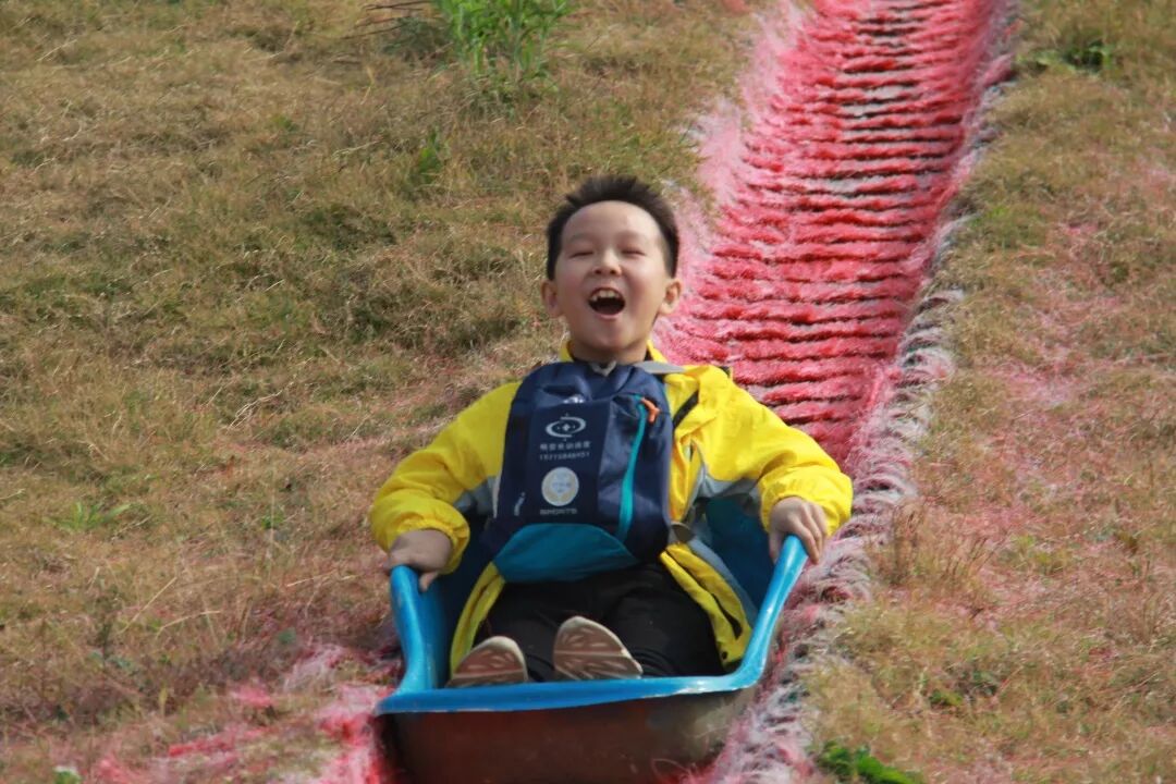 骑完刺激马儿,下一站我们要去哪里呢?哈哈哈,对啦!就是去你们最期待最好玩的一飞冲天——滑草道,害不害怕呀?宝贝们都要异口同声说:“老师,我们都不怕,我们很想玩呀!”好哒,都是一群棒棒的小朋友,那就让我们一起来体验一下这个刺激的滑草道吧!