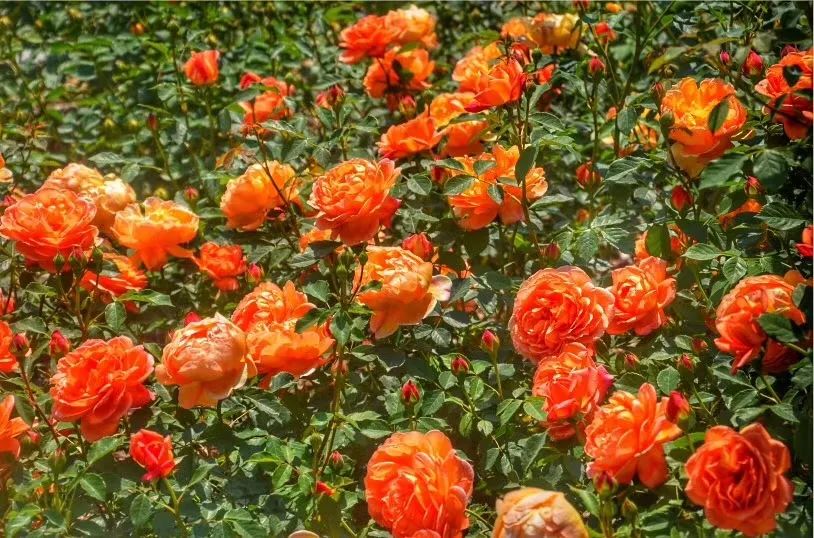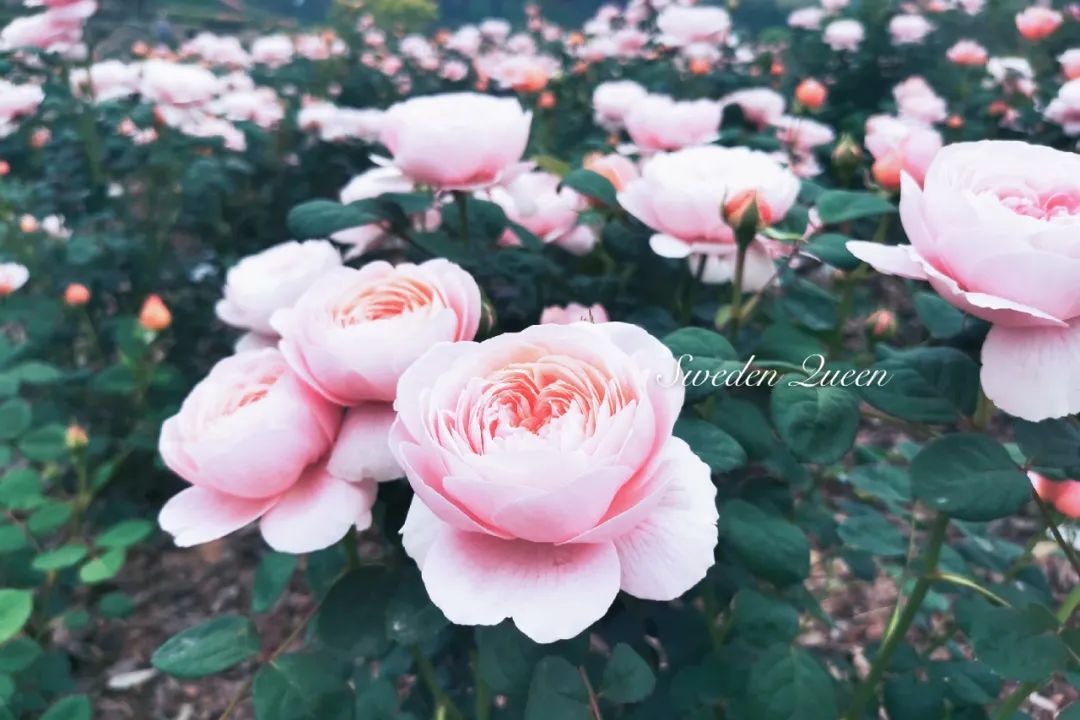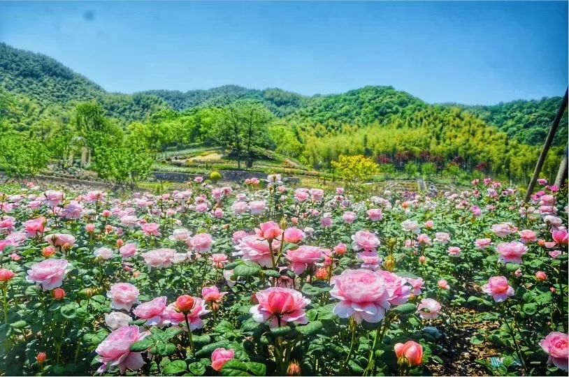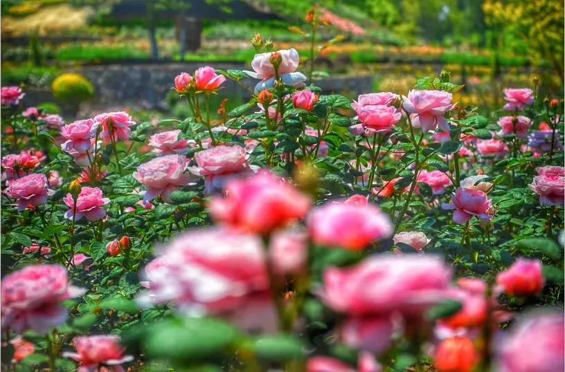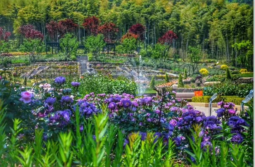 花海板块以英国奥斯汀月季园、芳香园(林下花卉)、日本杜鹃花谷、日本紫藤园、五感园、九曲花街、花海餐厅等组成。