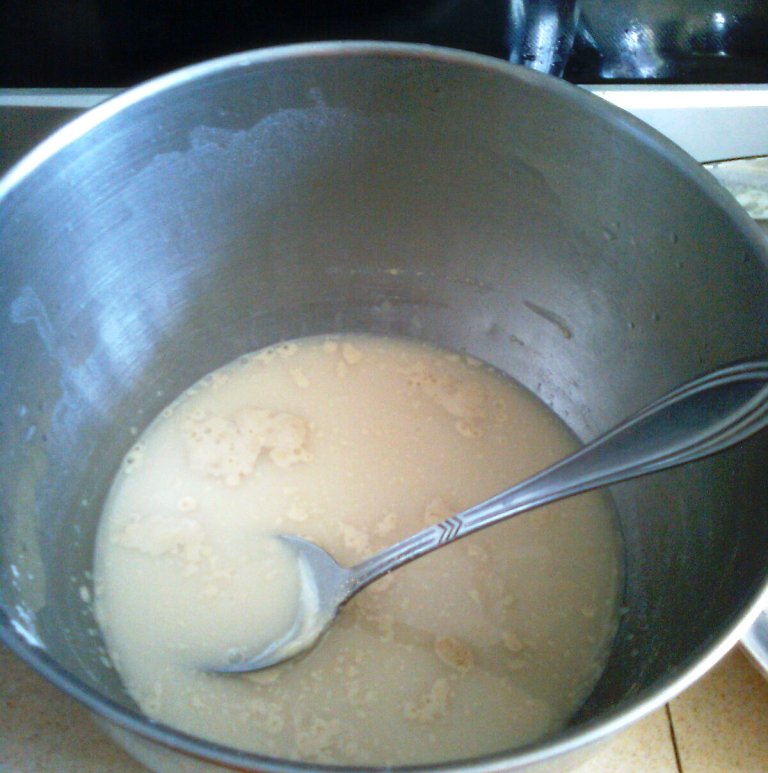 意:要保证作出软绵的包子皮, 就必须要先确定酵母菌的活跃性。 把酵母菌轻撒在40度C的温热面粉糖水上, 15分钟后,