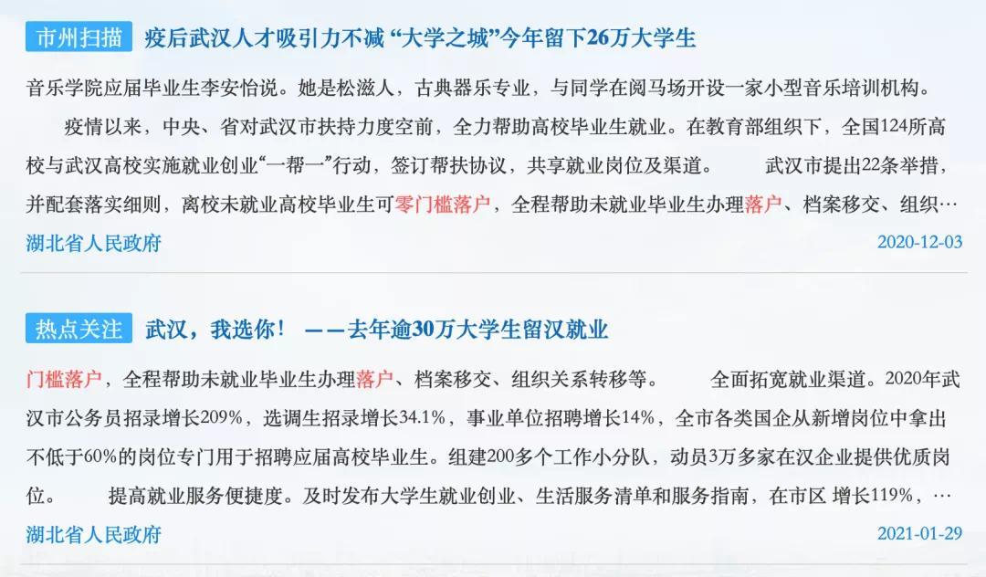 自2018年打出“五年留下百万大学生”口号后,武汉几乎每月都有政策出台:大学生“零门槛”落户;争取“让更多留汉就业创业的大学毕业生以低于市场价20%买到安居房、以低于市场价20%租到租赁房”。