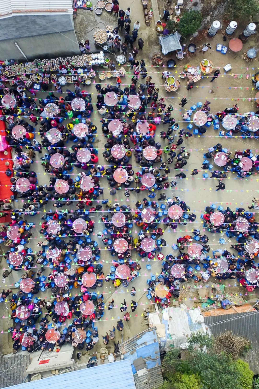 村里鞭炮一响,数十上百人座次排开,一碗碗的蒸菜如流水般端上饭桌,举杯畅饮,大口吃菜,热闹中是浓浓的人间烟火气。