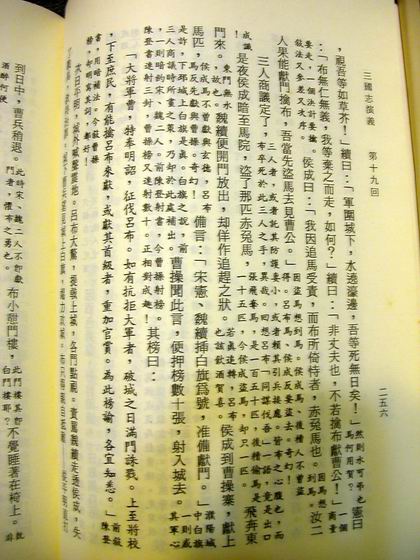 我所說的版本,並非古籍版本學之版本,例如紅樓夢有程甲本、程乙本等;水滸有八十、一百二十回本、什麼容與堂本貫華堂本等,那方面知識須請教國學專家。我說的只是現代經重新排版、標點的版本,且在一般書店就可買到的版本。一般讀者所看過的三國演義大部份是一個目錄加上全部120回的正文收錄,以紅色或黑色硬皮封面精裝的那種,其出版社大約是文化、正揚、南一之類。較好的版本是在每回之後加上注釋以方便讀者理解正文中較困難的詞語,有的版本注釋多,有的注釋少些,也有的是列在內頁旁側。更好的版本是再加上一些專家學者賞析或研究或版本校對的文章,記得三民書局的版本是這樣的。這種版本已經不錯了,很適合初次讀古典長篇小說的讀者看。但我提的是一個我心目中超級版本.............老古文化事業公司所出版的"精印三國演義"。