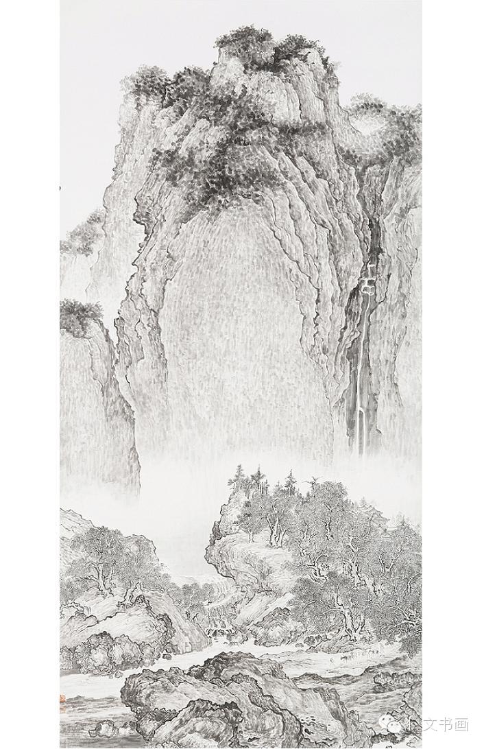 山水立轴 临范宽溪山行旅图 纸本水墨 195X95CM