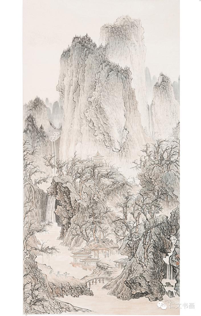 山水中堂 拟李成晴峦萧寺图 纸本设色 138X69CM