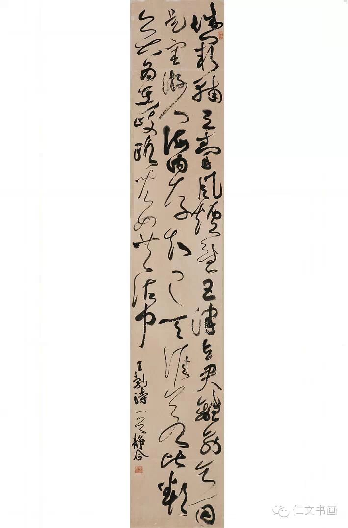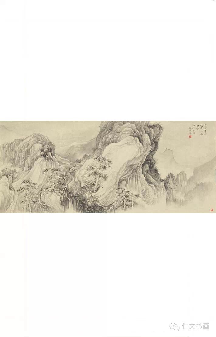 山水横幅 携杖云霄图 绢本水墨 90X39CM