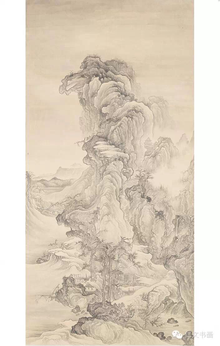 山水立轴 临郭熙秋山行旅图 绢本水墨 177X85CM