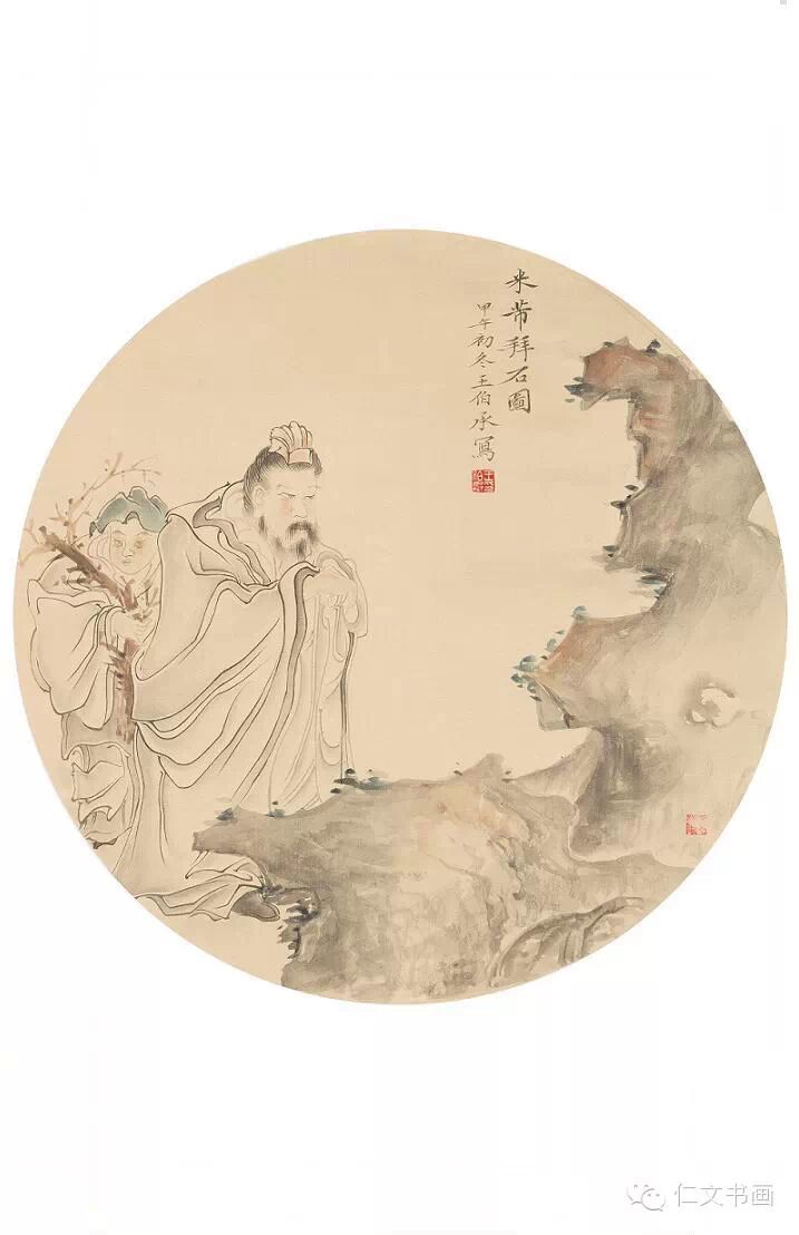 人物团扇 米芾拜石图 绢本设色 25X25CM