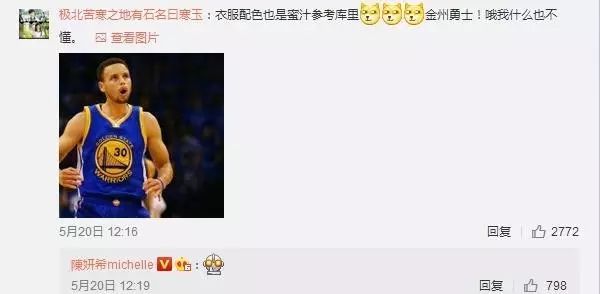 细心的网友还发现,小星星衣服颜色搭配酷似陈晓最爱的球星库里。最后还得到了陈妍希的回复认证。