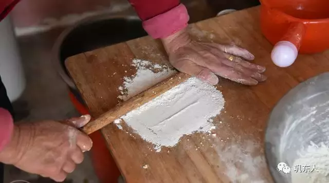 一般人觉得红薯粉和红薯淀粉是一种东西,其实还是有所区别,大妈正在手擀的是红薯淀粉,淀粉干结成白色的块状,吃的时候要擀成粉状。红薯粉就是晒的红薯干磨碎,颜色偏黄、红或者灰白,主要看红薯的种类。