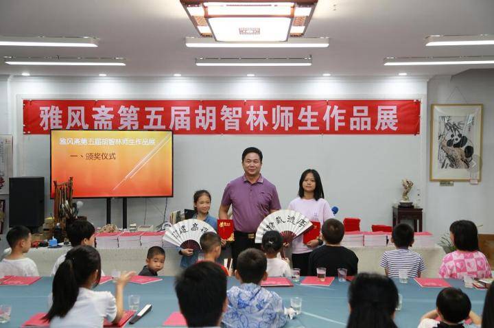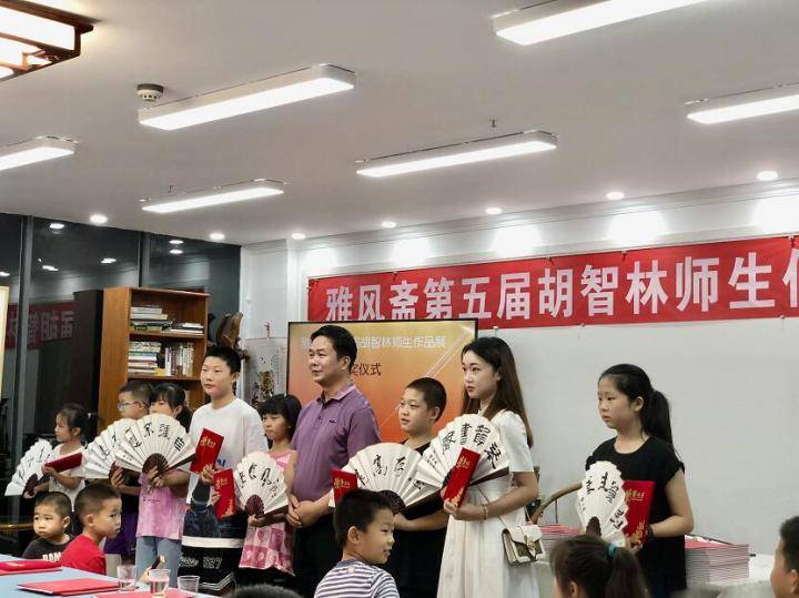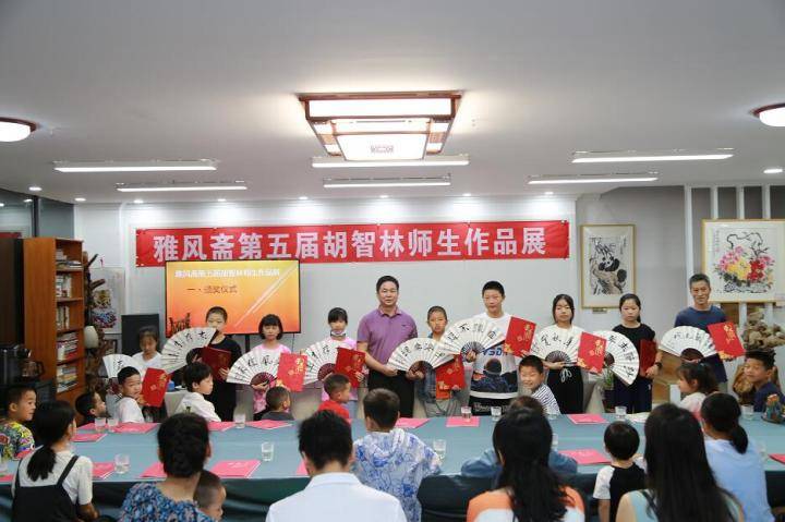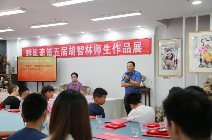 7月2日,雅风斋第五届胡智林师生作品展,在新都区海峡茶城胡智林艺术工作室雅风斋隆重举行。四川省美术家协会副主席、成都市美术家协会主席姚叶红专程发来贺电,祝贺画展圆满成功!开幕式上,首先为获奖作者进行了颁奖;其次军旅画家胡智林讲述学习书画与成才的重大意义;再次学生家长成都三温暖暖通工程有限公司董事长李方玉就如何培养孩子书画兴趣与学习的重要性作了交流发言,学生李松芳还进行了精彩的古筝才艺表演。参展作者大部分是以6岁以上少年儿童,绘画题材以国画花鸟、山水为主。展览旨在继承与弘扬中华优秀传统文化,培养少年儿童从小热爱传统书画艺术,增强孩子们学习书画的兴趣,相互学习交流,为将来成才打下坚实基础,助力孩子们健康成长,绘就精彩人生。
