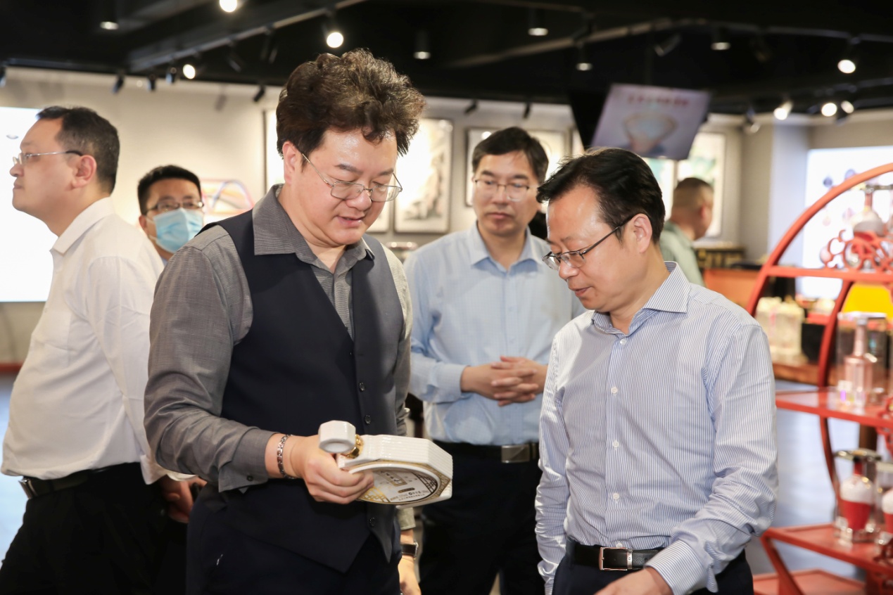 在一众接待人员的陪同下,洛职以党委书记朱美荣为首的工作组人员先后参观了万茗堂·绿业产教融合实训基地以及私人酒博物馆、电商直播间、客服团队职场等地。在参观时,朱美荣书记对私人酒博物馆中所展示的一系列文创精品赞不绝口。商学院王军华院长对万茗堂将酒文化、陶瓷文化、书画文化、家居文化结合起来整套输出的理念做出高度评价,并对万茗堂以酒为媒输出文化、弘扬传统的经营理念连连称赞。
