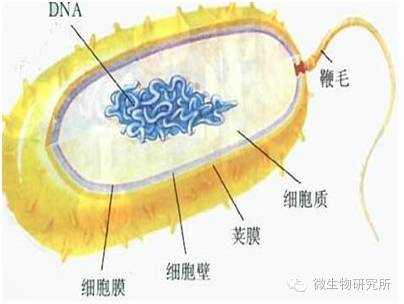 细菌细胞是原核细胞,即在细胞中没有细胞核结构,只有明显核区(拟核),外面无核膜包围。与有真正细胞核的真核细胞相比,其它结构成分也有差异,如原核细胞壁的主要成分是一类含有氨基酸的多糖,称为肽聚糖,而真核细胞壁主要由纤维素或甲壳质组成。
