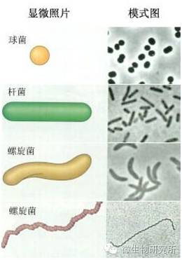 细菌的基本形态有三种:球状、杆状和螺旋状,分别称之为:球菌、杆菌和螺旋菌。
