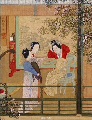 明 仇英 贵妃晓妆圖頁(局部) 《人物故事圖》冊十開之一 故宮博物院