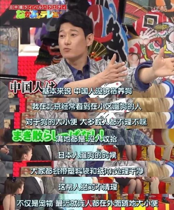 矢野浩二早年在日本的综艺节目中说,中国人根本不配养狗,而且把中国人的养狗与日本的养狗进行了一番对比,中国人出去遛狗,对于狗的大便,大多数的人是不理不睬(这里说的是大多数,当然少数人应该还是好的吧)满地都是,没有人收拾;相比而言,日本人出门都带塑料袋和纸巾,对于狗的大便收拾的很是干净。