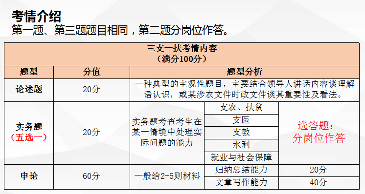 可以看到,三支一扶和事业单位的笔试内容有一定的区别,准备过事业单位考试的考生学也需要针对三支一扶的考试特点针对性备考!