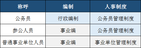 而参公人员介于两者之间,即编制为事业编制实行公务员管理制度。
