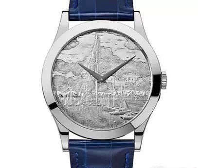 Storm”(微风和风暴),表盘上呈现海港千帆竞渡的场景。这些图案均由工匠大师采用浅浮雕技术在白金表盘上精心镌刻,每一枚最多需消耗108小时才能完成。