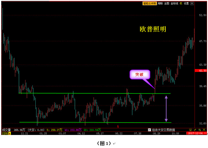 咱们不妨先来找一下这种股票在向上突破时的特征,见图1: