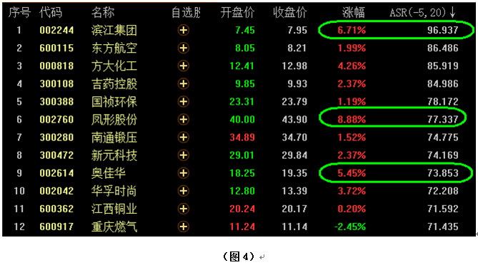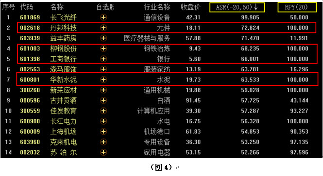 如图4所示,我们在个股列表标题行中加入ASR指标时所设的两个参数分别为-20与50。
