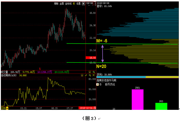 。故此:将参数M设为负5之后----更为顺畅的读法就是“在当前股价下方5%的股价位置”。如图3所示,