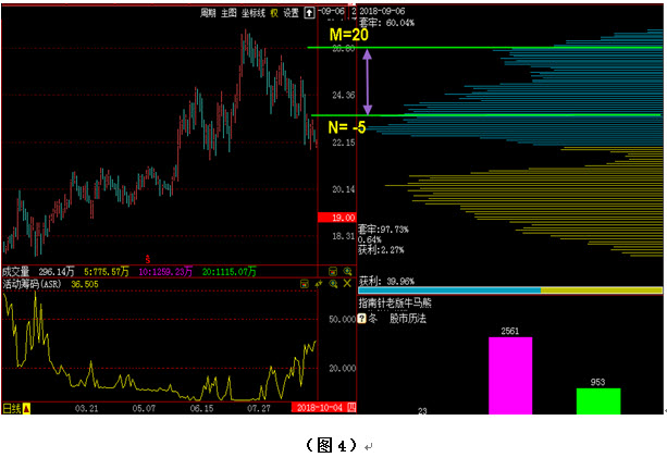 。如图3所示,ASR指标有两个参数,其中第一个参数M表示的是在当日收盘价‘上方’M%的股价位置,而第二个参数N表示的是在当日收盘价‘下方’N%的股价位置。