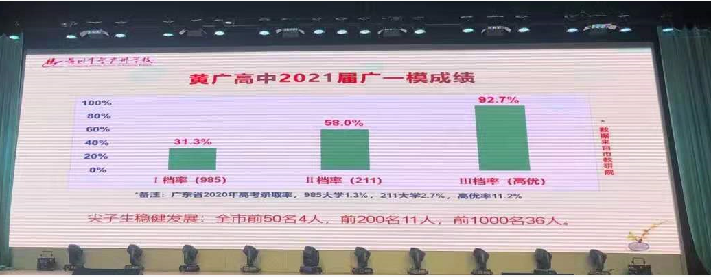 而在此次一模成绩公布后,黄广也公布了本校的具体成绩,全市前50名有4人,前200名有11人,前1000名有36人,一模高优率达92.7%。这个数值看起来确实很了不起,也因此,黄广在一模的物理类排名来到了全市第五。