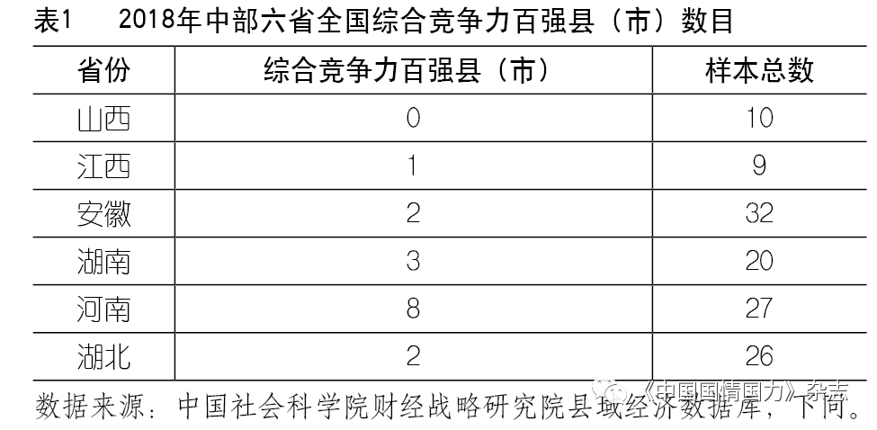 关键词:中部崛起;县域经济;省域比较