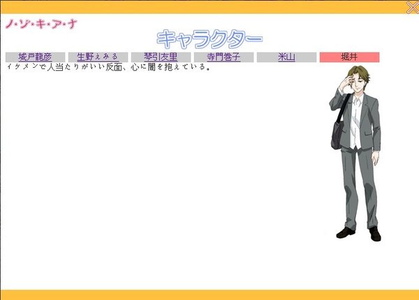 声优方面,男主角城户龙彦交由平川大辅担任,代表角色有《百花缭乱》柳生宗朗、《绯色的欠片》大蛇卓、《School Days》伊藤诚等,最为人知莫属“诚哥”了,平川大辅也因该角色被赋予人渣这一系列称号。其余的三位女声优分别为雾之峰纱罗、日野真冬、平田裕香,前两位都是新人声优,而平田裕香则为电视剧演员。
