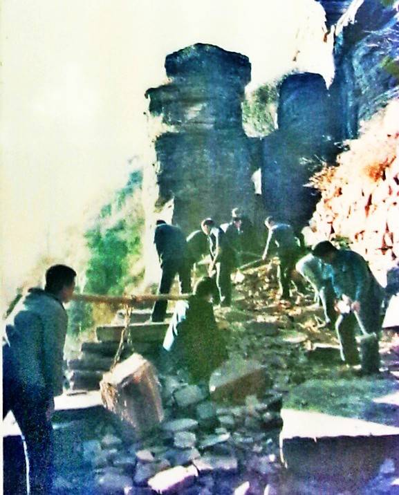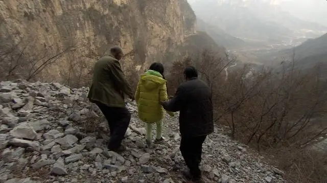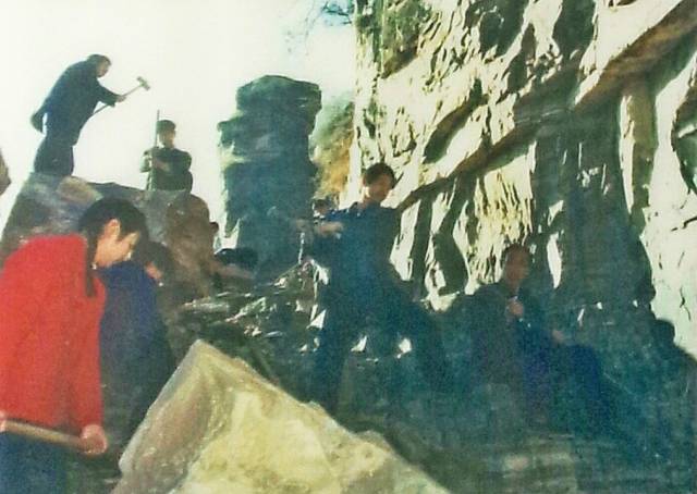 第一次在悬崖上抠出这样一条小道,只能胆大的人走,他们试图赶猪出山,结果赶了27条猪走了一里多就摔死了13头。