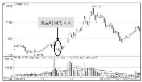 主力在洗盘时很讲究时间和节奏。如果时间太短,则不能清洗干净;如果时间太长,则可能招来市场新的散户争抢低盘。那么什么样的时间才是洗盘的标准时间呢?其实,洗盘时间的长短与市场的氛围、主力实力、操盘风格等各种要素都有着密切的关系。