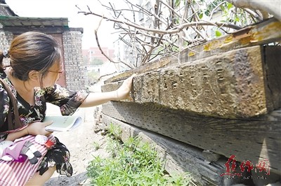 从东至西,记者沿着这条道清铁路的遗迹前行,一段锈迹斑斑的轨道延展了10多米后湮没在居民区内,轨道及枕木早已被民房占压殆尽,露出房基的一部分在土层下面若隐若现。另外,还有许多厚重且完整的枕木被居民用来搭建厕所或当门板使用。在一处居民家的院子里,记者看到两处老房子和一处看似炮楼的建筑。根据崔振海提供的线索和附近居民的介绍,记者推测这里就是给火车加水的站台。建筑年久失修,已经破烂,但在周围低矮的民房群中仍显得与众不同。