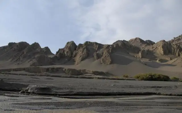 10.从吐鲁番艾丁湖南下,在硬如顽石的盐峭上约行10公里左右,将来到玛瑙滩。另外,风凌泥石底座也很有价值。