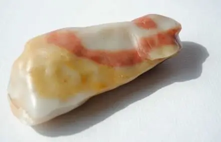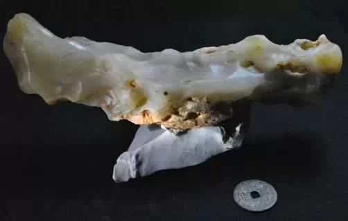 9.哈密地区南湖戈壁盛产的蛋白石,呈胶质状,温润、半透明,打磨后的精品可出现猫眼光感,可做精美的雕刻用料,备受玩石者推崇。哈密地区罗布泊腹地。石种有:戈壁玉、托帕石、风凌石、彩石、彩色泥石、蛇纹石、碧玉、东陵玉。