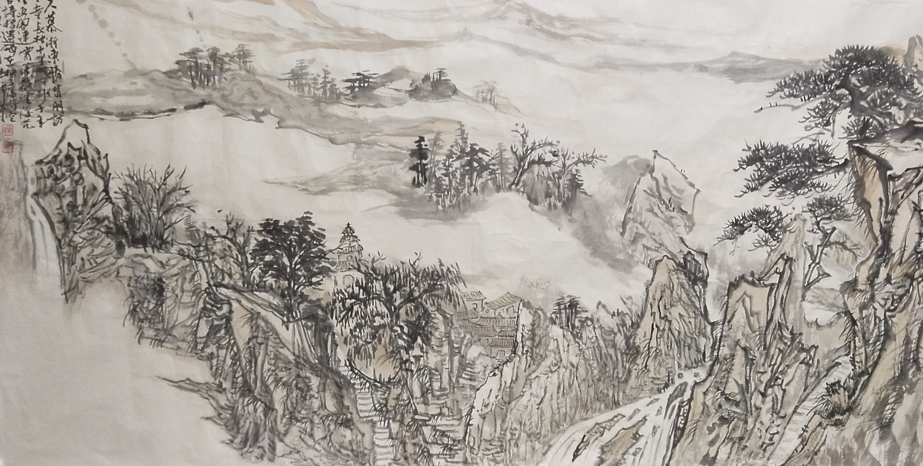 读雅儒兄的山水画是一种享受,能够让人忘却心中的烦恼,深入画中,追寻画中的宁静,探寻画中的奇险,感悟画者心中的桃花源。