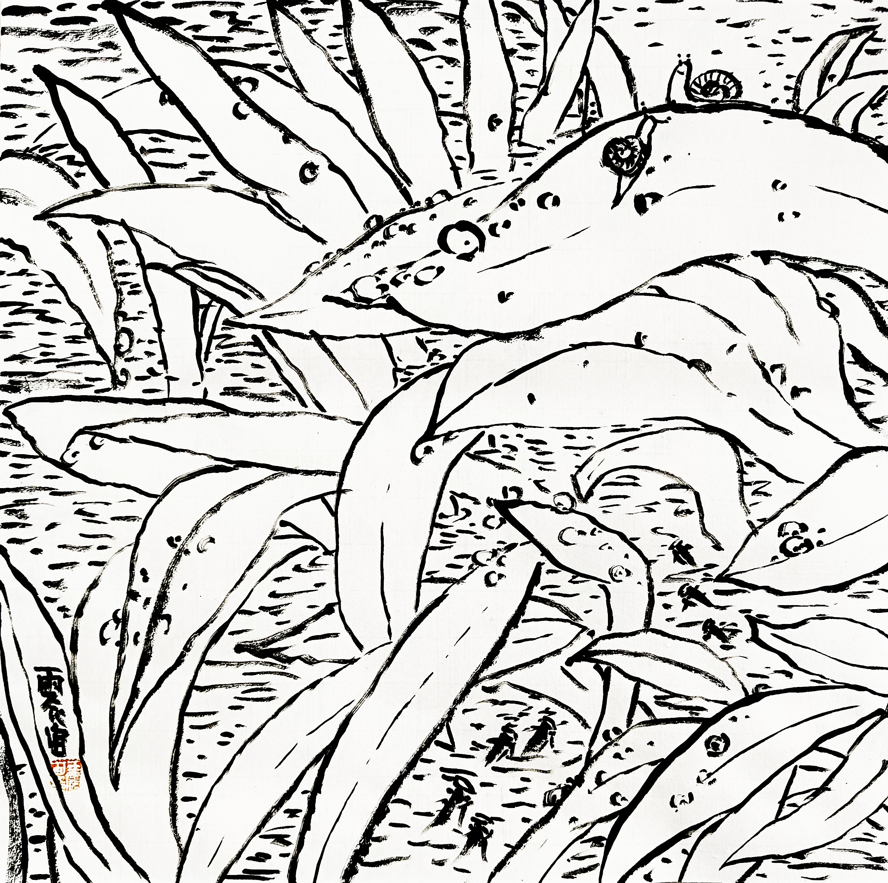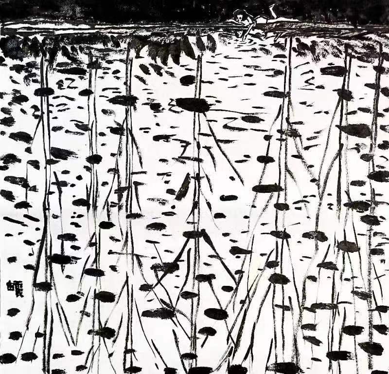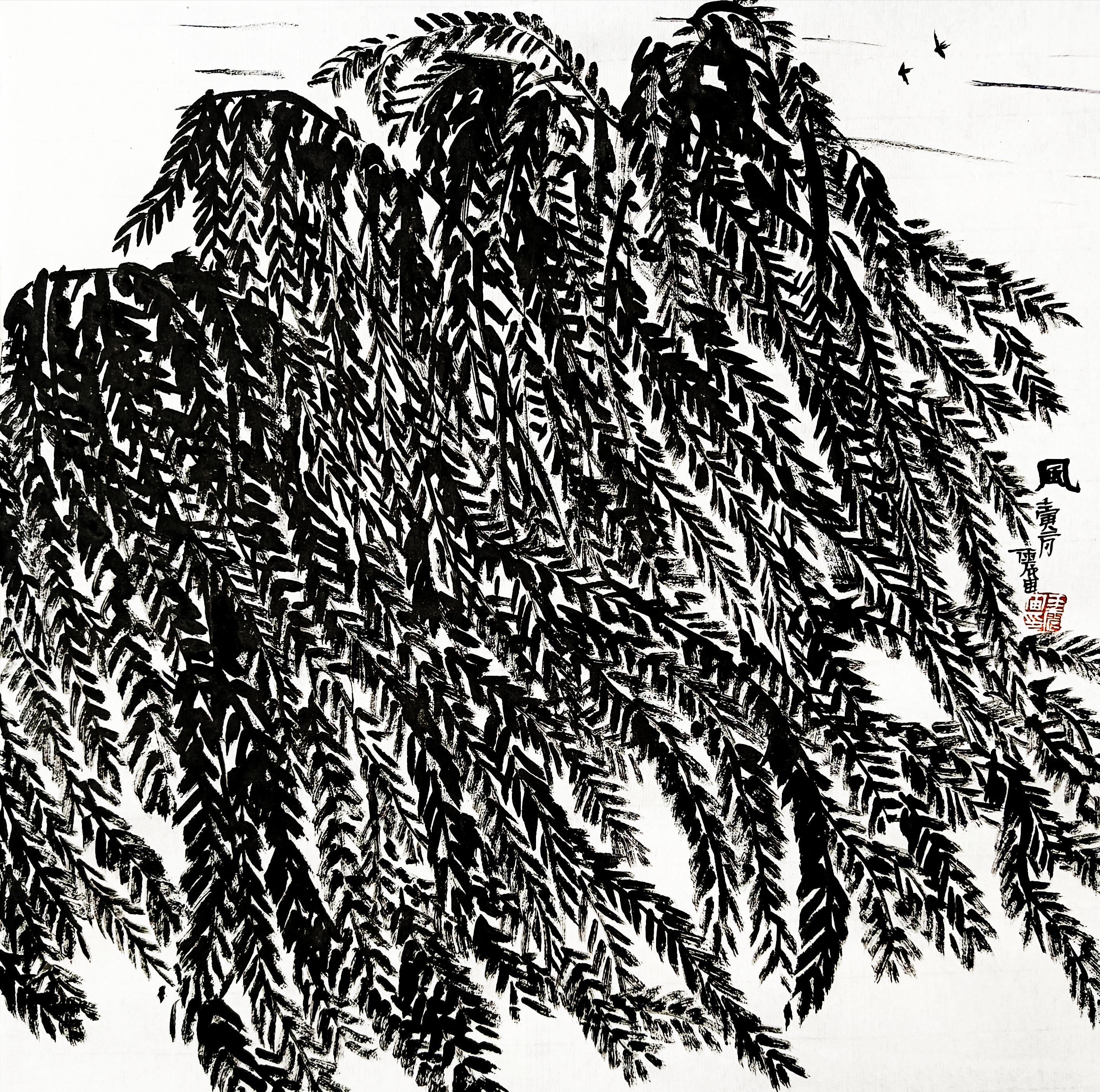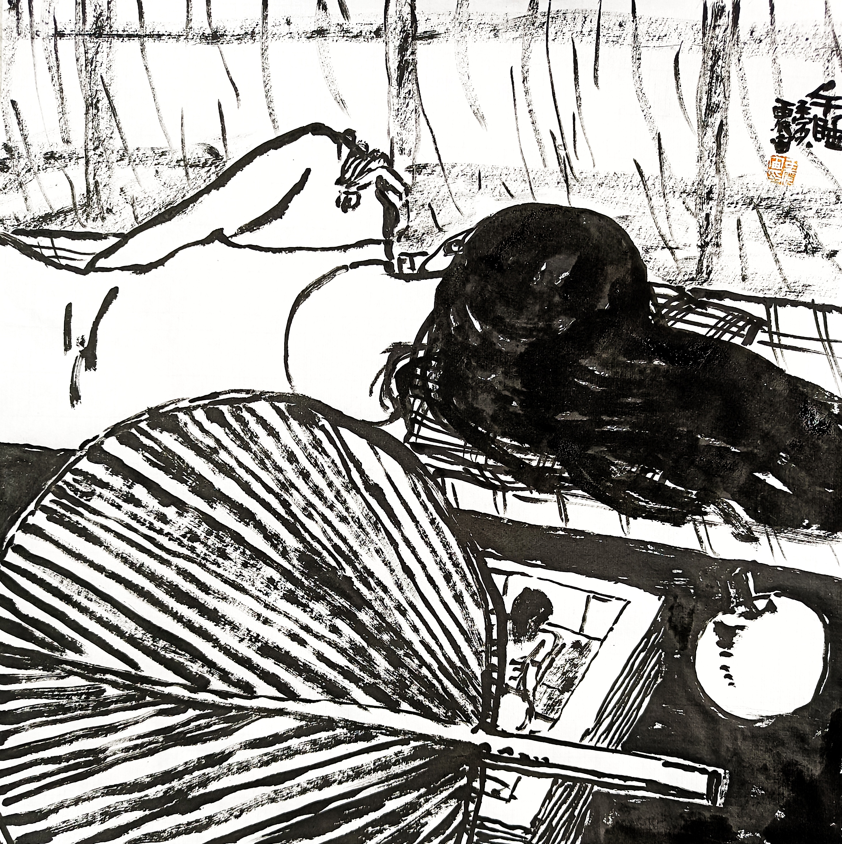 要说中国画笔墨里的“勾、皴、点、染”,显然他都是并不在意的,但在他的画中又看到了在中国画里近乎哲学意味的“既白当黑”,且被他发挥的淋漓尽致。我想,这正是他对中国画的理解再至研究思考的表现,不拘泥形式一味追古而将精神传承不朽,研究、思考、探索—这正是作为一个中国文人该承担的责任。