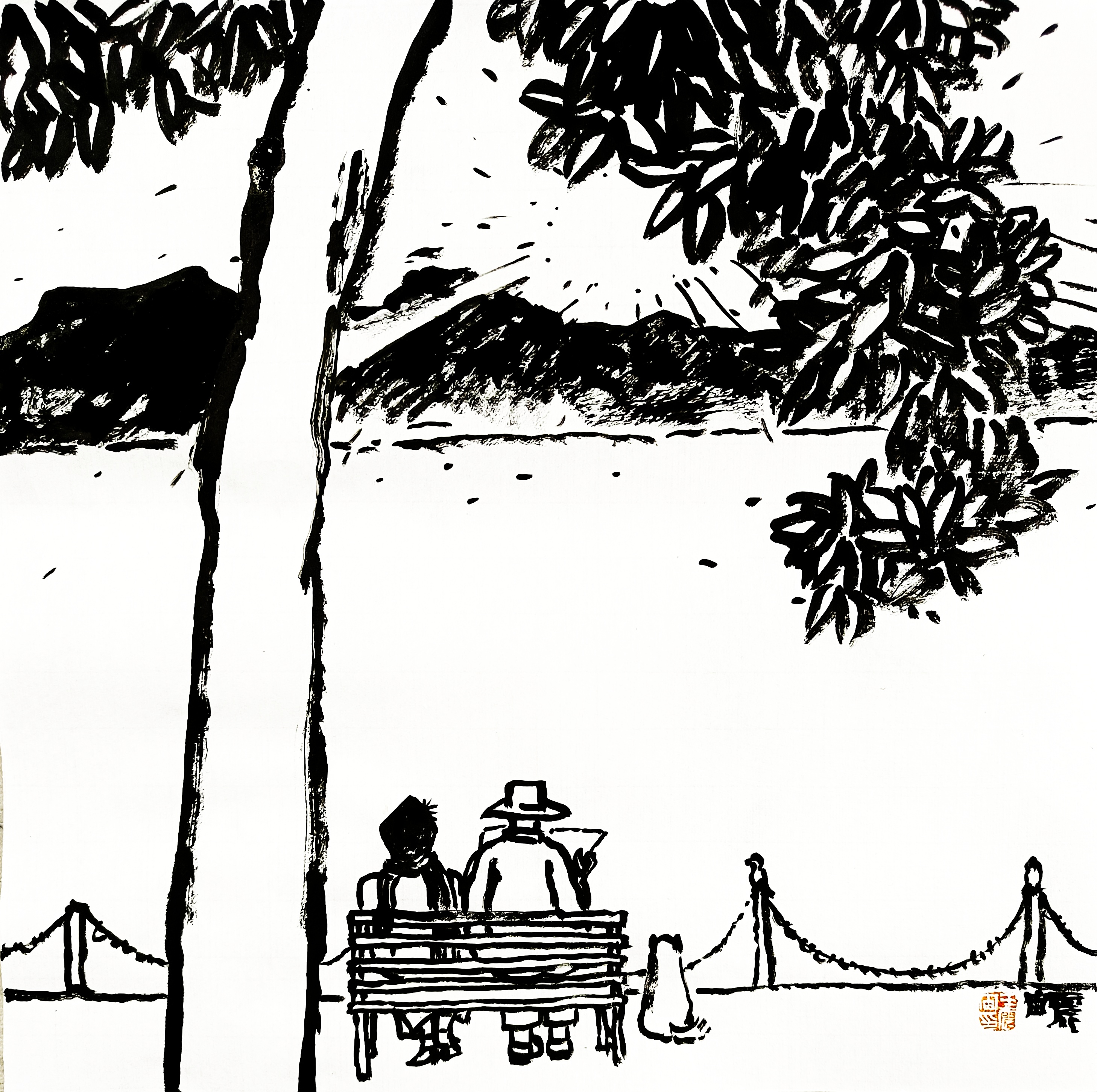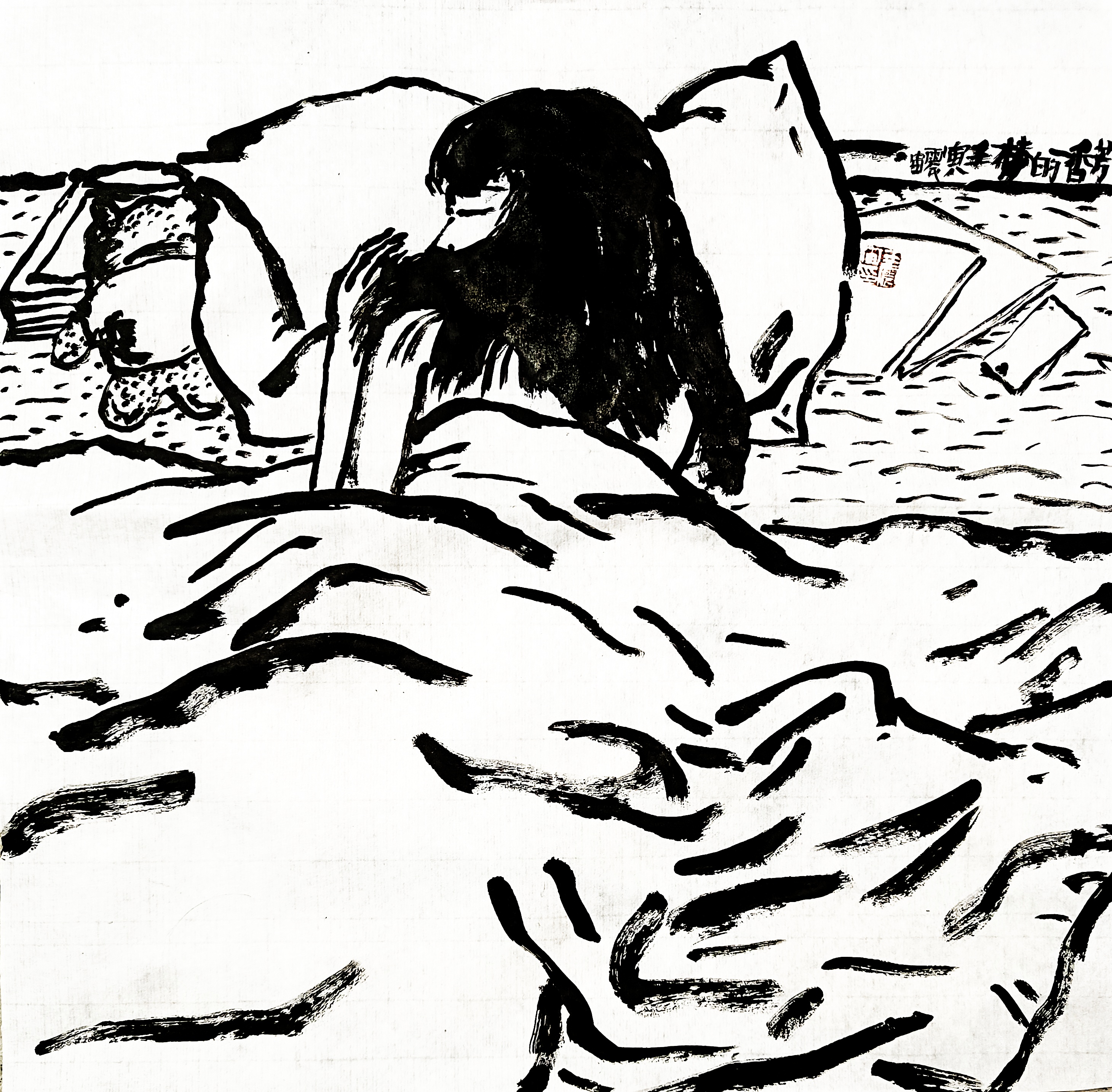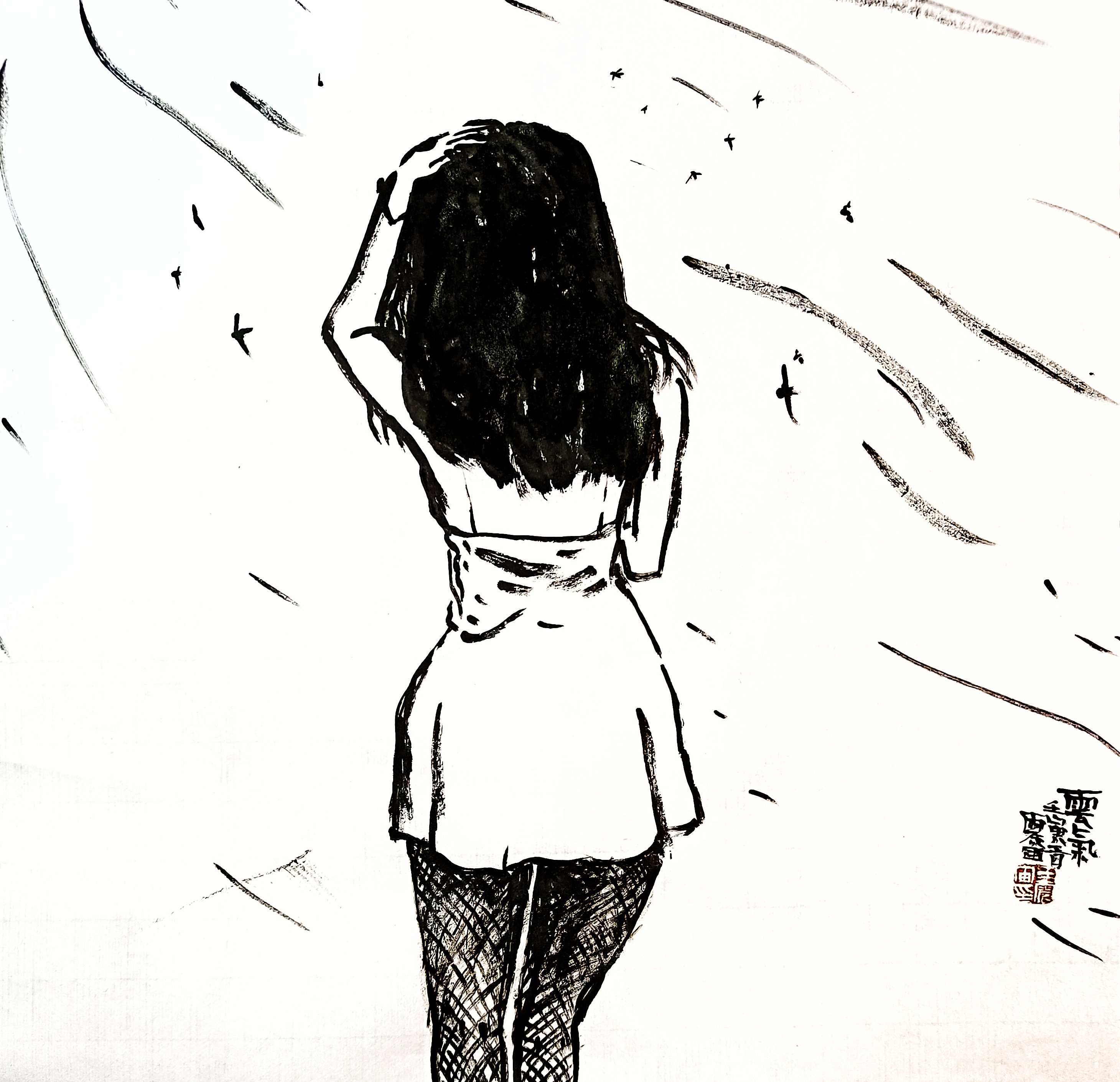 我还未来得及认识王震宙本人,却知道他必是一个洒脱直率之人。他的画真实又大胆,他的诗随性又落拓,寥寥几笔就能把他作画的情绪酣畅准确地表现出来,无疑他对自己的画面节奏把控也是极具自信的,有时候是飘渺的空谷野趣,有时候是都市的缱绻红尘,这一幅幅的画作明明极具当代风格,却在其中看到了中国画中的文人精神和思想。当然,他不止大胆在笔墨上,会思考、善于思考也是我对他的印象,不拘形式不被表象所累,实验者实践着,用传统中国文人的脊梁走在当代艺术思想的路上,何其自信,何其清醒!