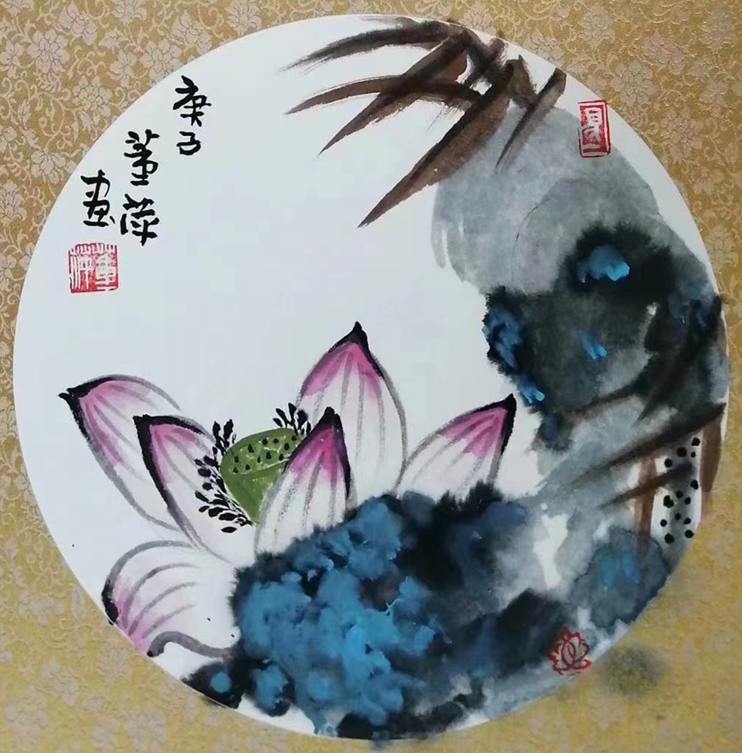 董萍,室名“蕉天墨雨堂”。自幼酷爱绘画,学习中国花鸟画二十多年,尤爱吴昌硕大师绘画题材,以花卉为主,亦偶作山水。其作品多次参加青岛市及胶州市书画展、艺术展等,受到广大市民及领导的高度评价,带领胶州市妇女艺术家开展“三八妇女书画展”,博得社会肯定。