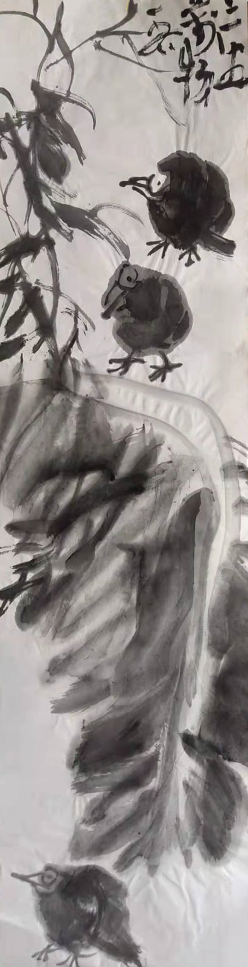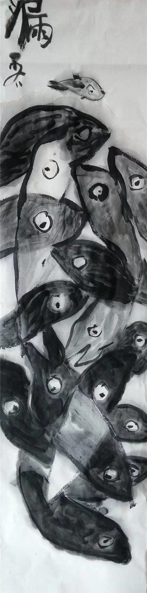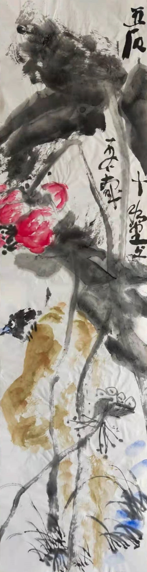 六三年出生的一叕,近六十了,开始画心画自己,少与人往来,常泡在画作坊中,大盘小盘中宿墨,松烟,油烟,生漆,都在不断的倾倒铺水中,今天看到自如的驾驭有些担心,这是画吗,是写意画的深处吗,甚至于对吗?这是好多人的问题,他从不顾及,仍然一任倾出,所有的一切都包含在水中,他说的画的生命在于水,无水可以不谈水墨,我想是真的,是对的,让他自己选择的路跪着也要走下去,期待着!