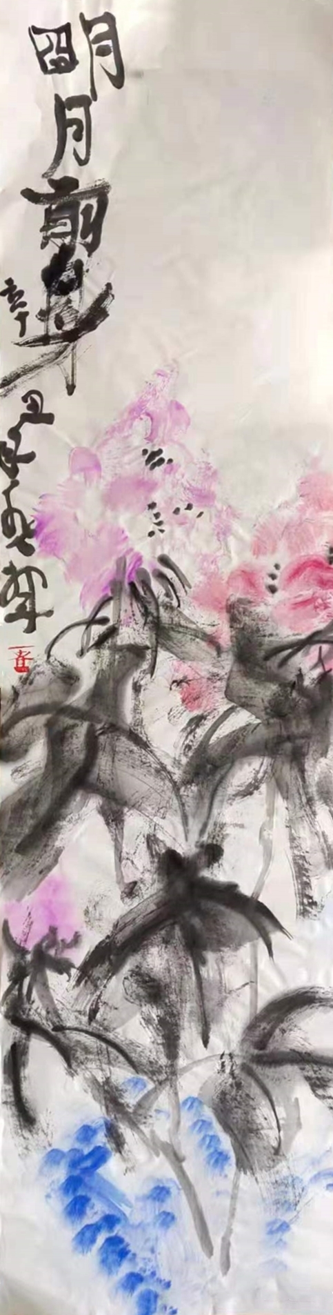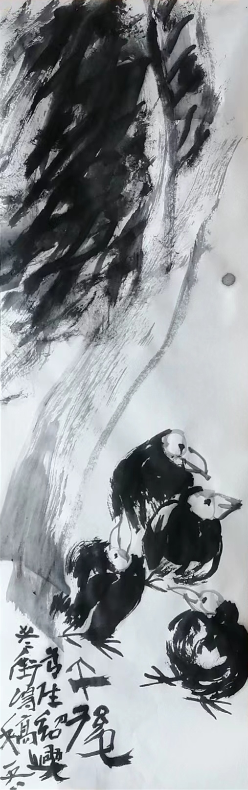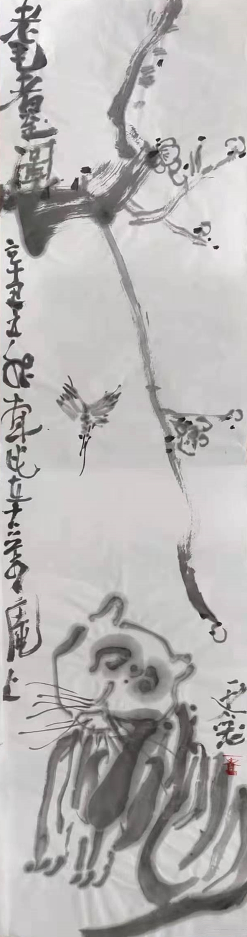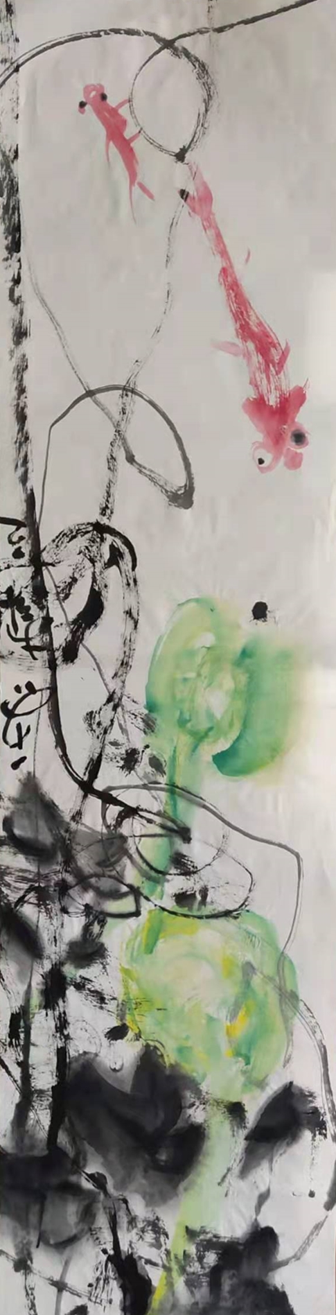 六三年出生的一叕,近六十了,开始画心画自己,少与人往来,常泡在画作坊中,大盘小盘中宿墨,松烟,油烟,生漆,都在不断的倾倒铺水中,今天看到自如的驾驭有些担心,这是画吗,是写意画的深处吗,甚至于对吗?这是好多人的问题,他从不顾及,仍然一任倾出,所有的一切都包含在水中,他说的画的生命在于水,无水可以不谈水墨,我想是真的,是对的,让他自己选择的路跪着也要走下去,期待着!