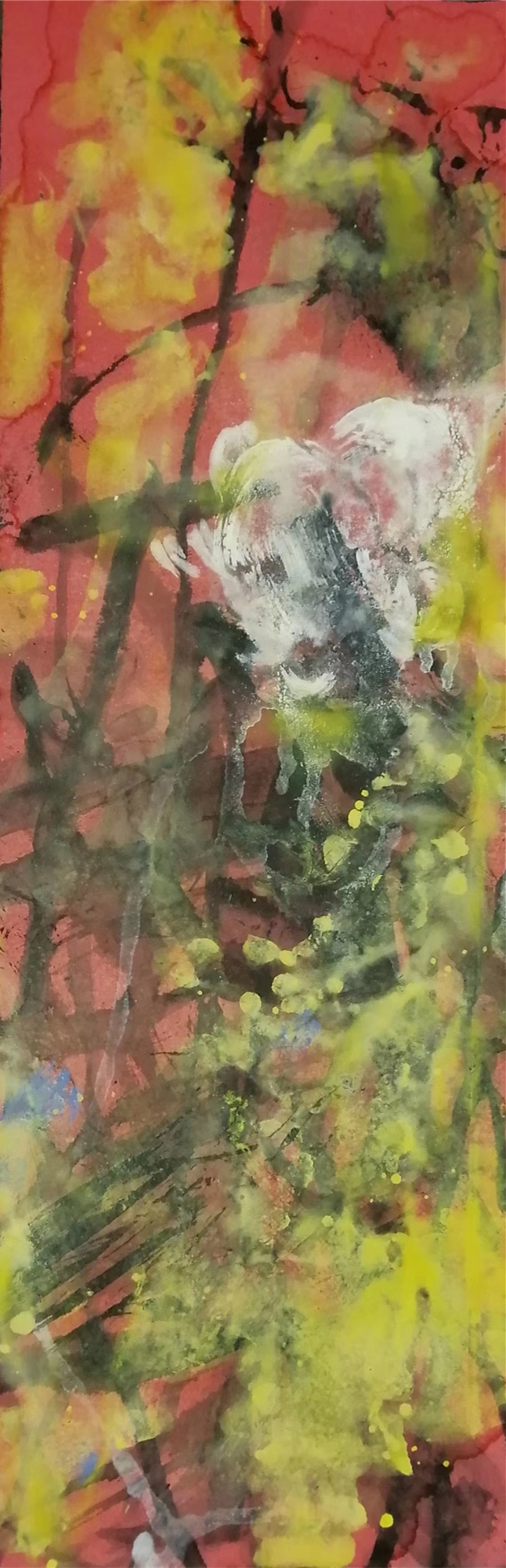 郭明良,一者,祖籍青州,山东胶州生人。随谷宝玉先生学画,喜古器俱。近年寻抚高古、凿刻、泥土、陶器、碑碣、画像,诸多侘傺元素为其所用,深远无形,自由散乱,似是而非,从水、纸、墨、丙烯等相互渗透交融,叠加碰击,形态自然的过程中体悟平安、无欲、欢喜的野性之造境。