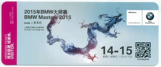 宝马大师赛专享单日票、周末联票及家庭套票只需根据票种即可入场。