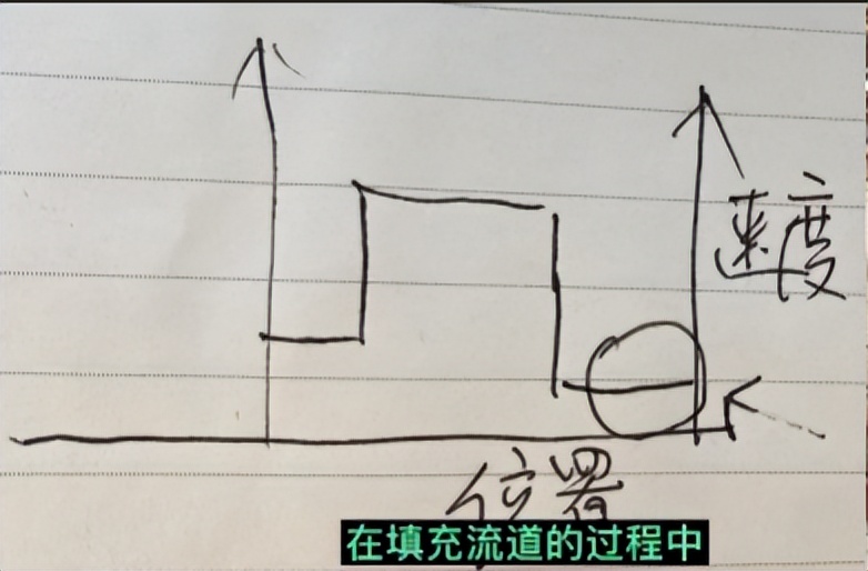 第二个方面,这个料用慢速前进的位置上不能太靠前,也不能太靠后,如果太靠前,这个慢速转高速,他会有类似于气纹等缺陷出来,如果切换的太晚,料已经粘到这个模具上了,这时候速度还是很慢。