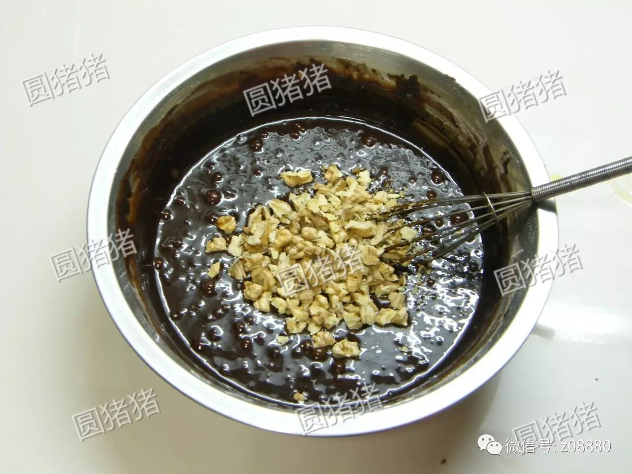 10.最后加入烤香的核桃仁拌匀,即为蛋糕面糊。