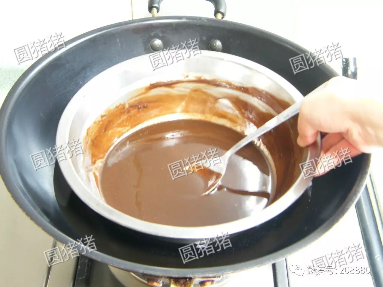 4.隔40-50度温水加热溶化,一边加热一边搅拌成酱状。