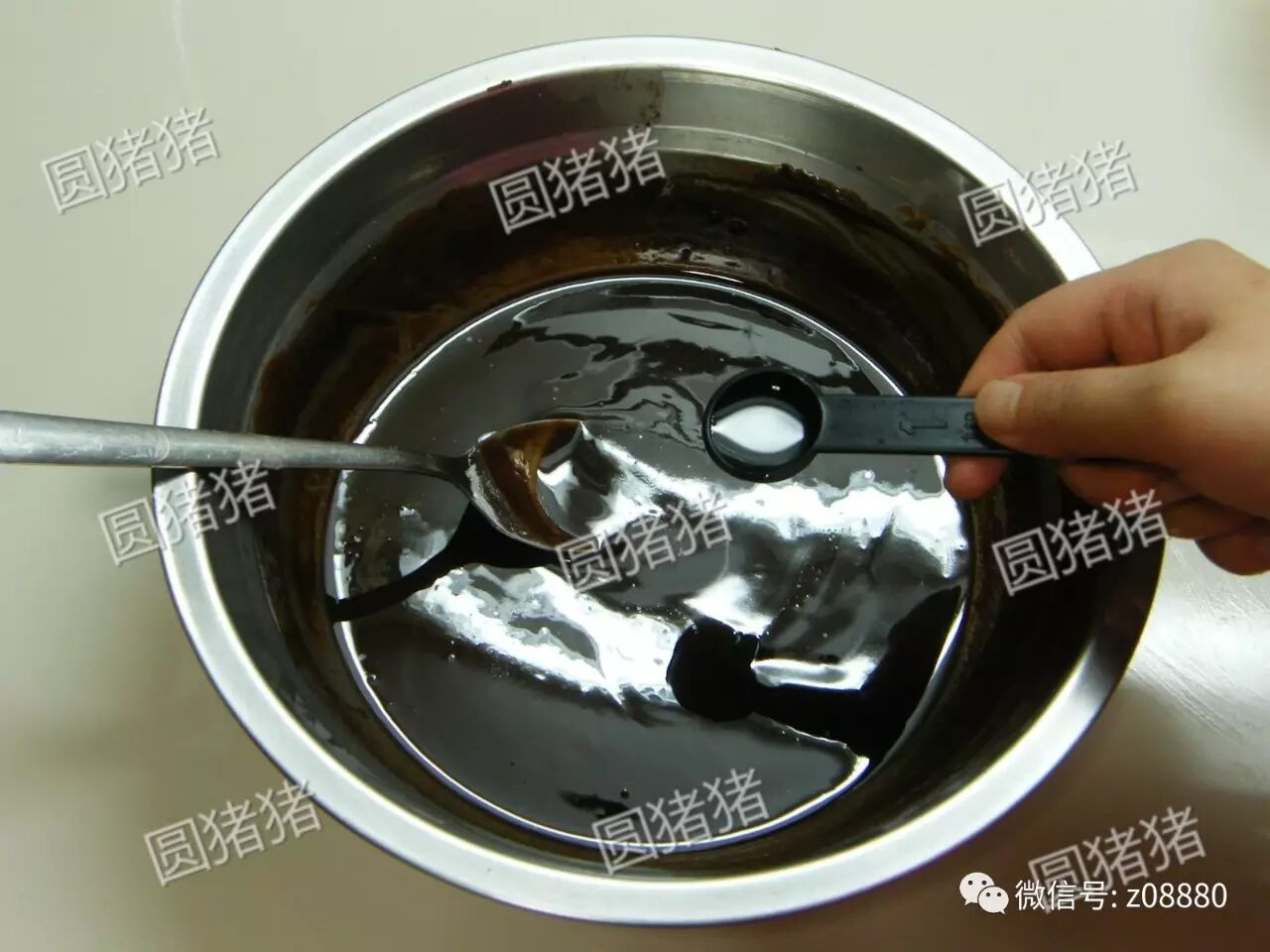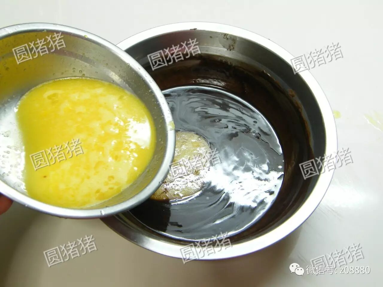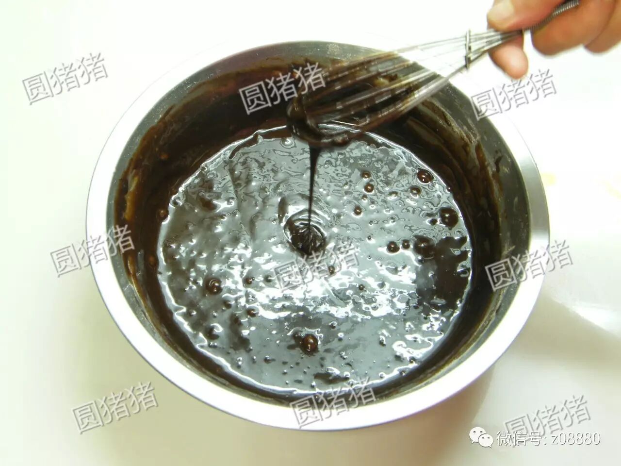 7.将鸡蛋液加入巧克力酱中搅拌均匀。