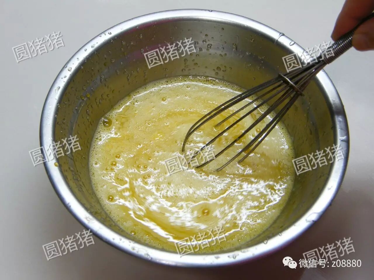 6.室温鸡蛋加砂糖用打蛋器打至砂糖溶化。