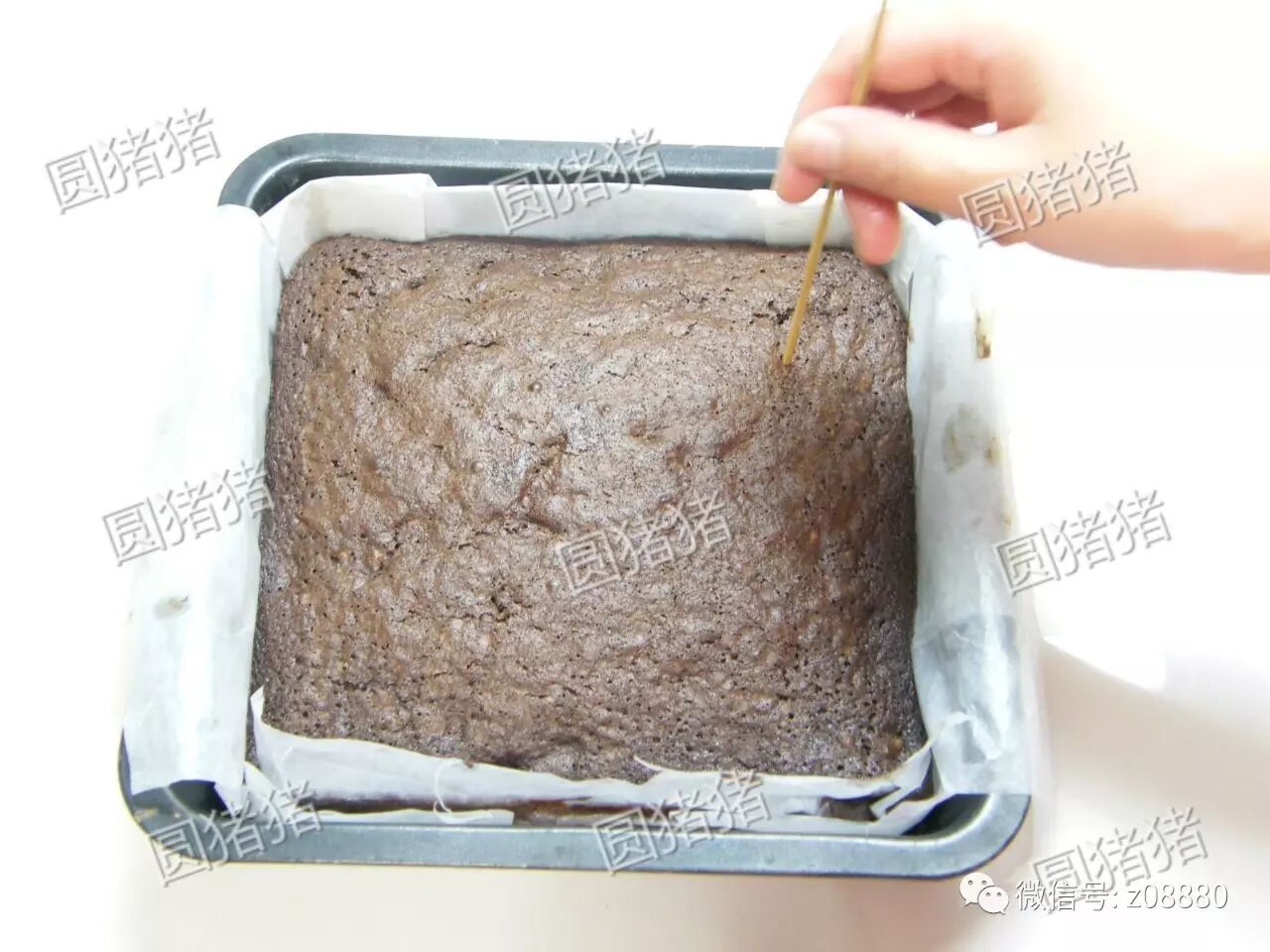 12.烤箱175度预热,上下火,175度中层烤25分钟。烤好的蛋糕用竹签插入无粘黏即可。
