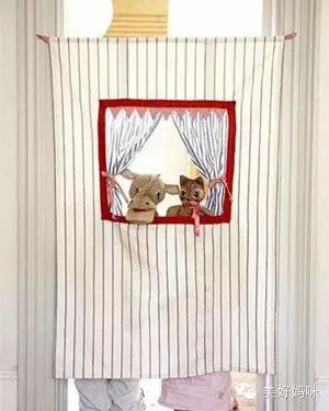 找一块床单,DIY成一个简单的小幕布,让孩子们带着它们的小手偶进行绘声绘色的表演,要鼓励它们尽情的想想创造哦。其乐融融的家庭亲子时光,多美妙!
